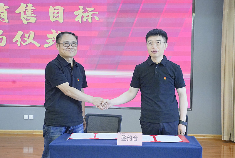 劉利鋒分別與銷售部、國際業務部簽訂2025年度銷售目標責任書,勉勵銷售團隊堅定市場信心,強化突圍決心,以承壓奮進的拼搏姿態全力完成年度目標。